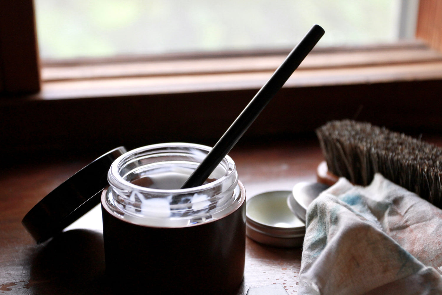 また、もしも白い部分が残ってしまうようでしたら、ほんの少し乳化性のクリームなどを追加するか、ブラッシングや乾拭きの際の摩擦の熱で再び革の中に染み込ませる、という方法で見えにくくなります。