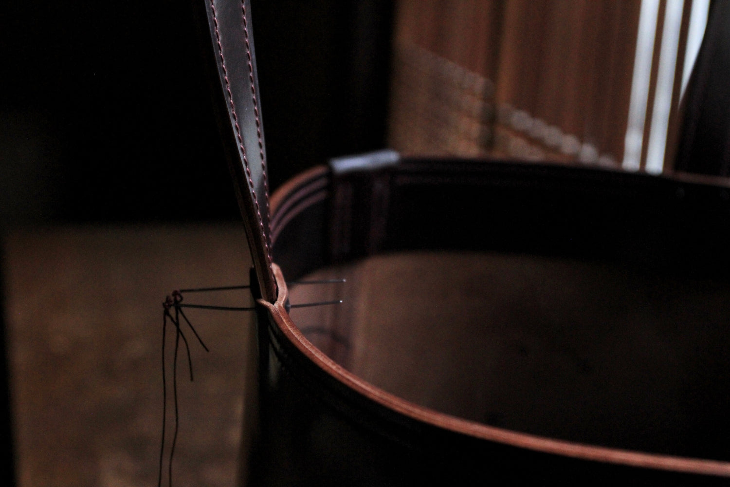 革のお手入れとともに、革の色やクリームの色が少しずつ糸に移っていきます。また同じように、糸がそのものがクリームや革の油分を含んでいくことで、革の屈曲に合わせて糸も伸び縮みを繰り返します。