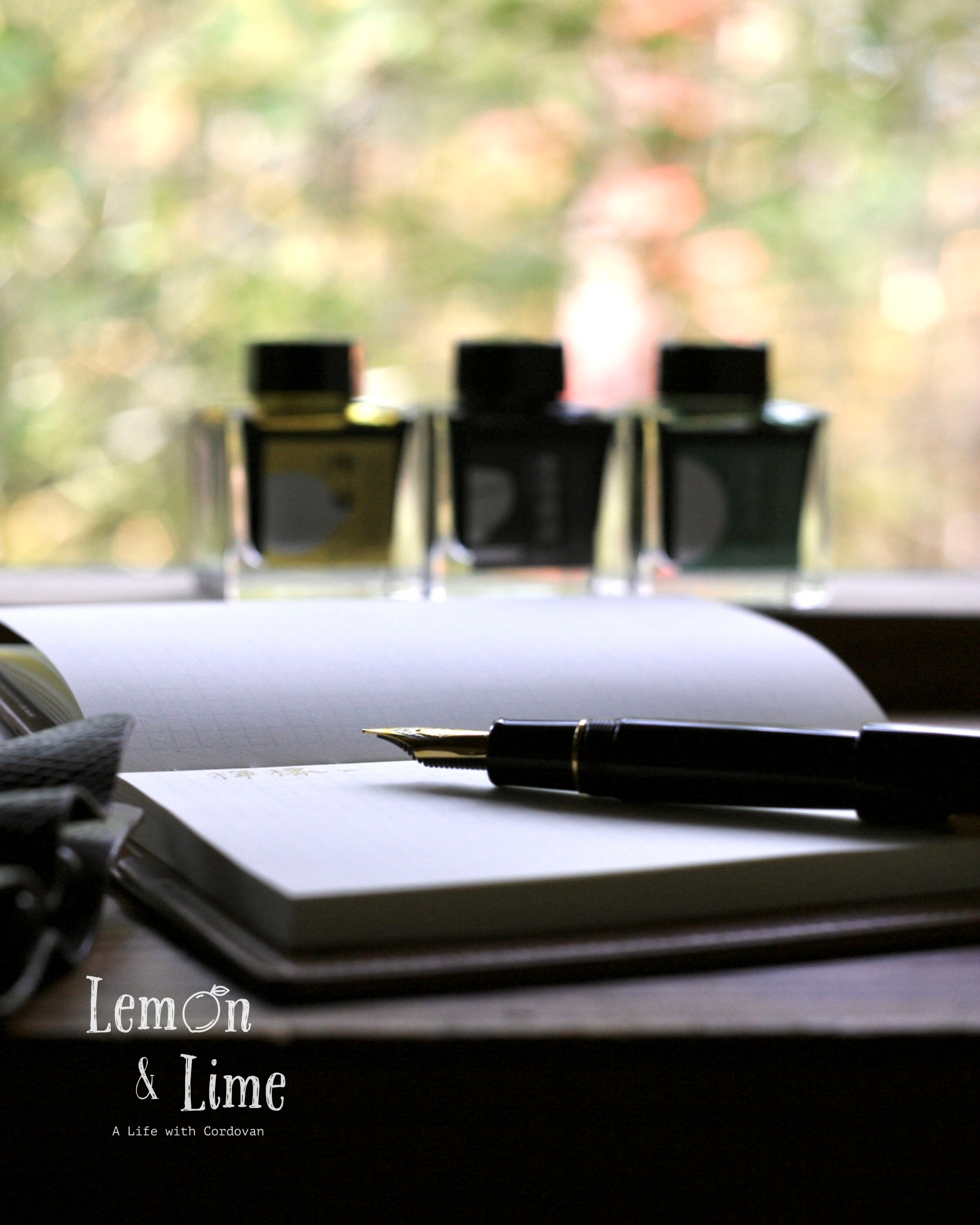 サンプル(126mm x 180mm) に使用している万年筆は、15 x 141、14 x 132、14x 133 (mm、キャップ部分の軸径 x 全長) の3本です。