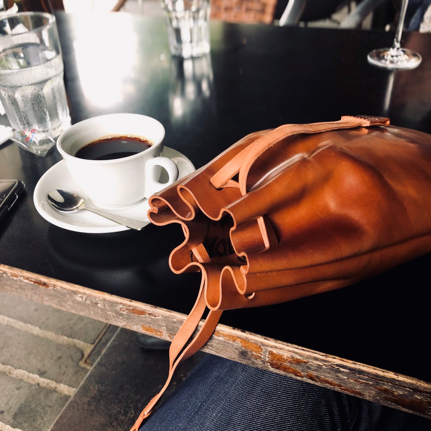 そんなコードバンの持ち味を存分に活かすために作ったこの巾着が、atelier Lemon & Lime のはじめての製品です。