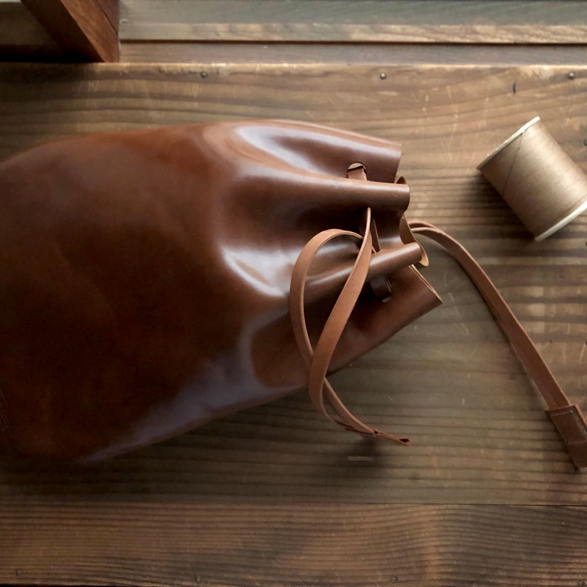 コードバンの持ち味がいちばんよくわかる形状が、この巾着でした。
