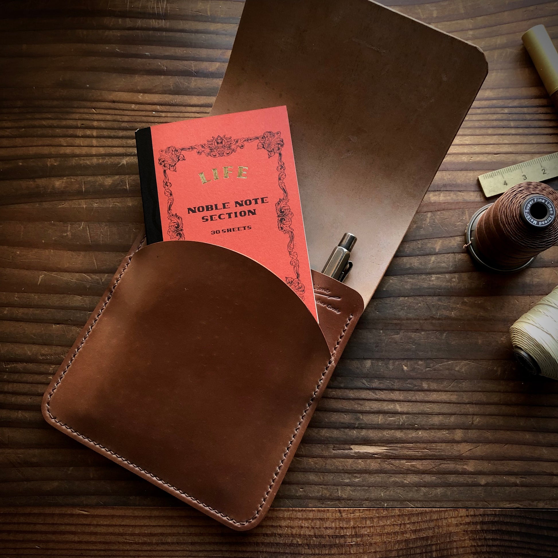 The free pocket is designed to hold a thin A7 size notepad. (Because the lower half of the pocket is connected to the pen holder, please note that the pen may be scratched if you put a hard object such as a ruler in it.)