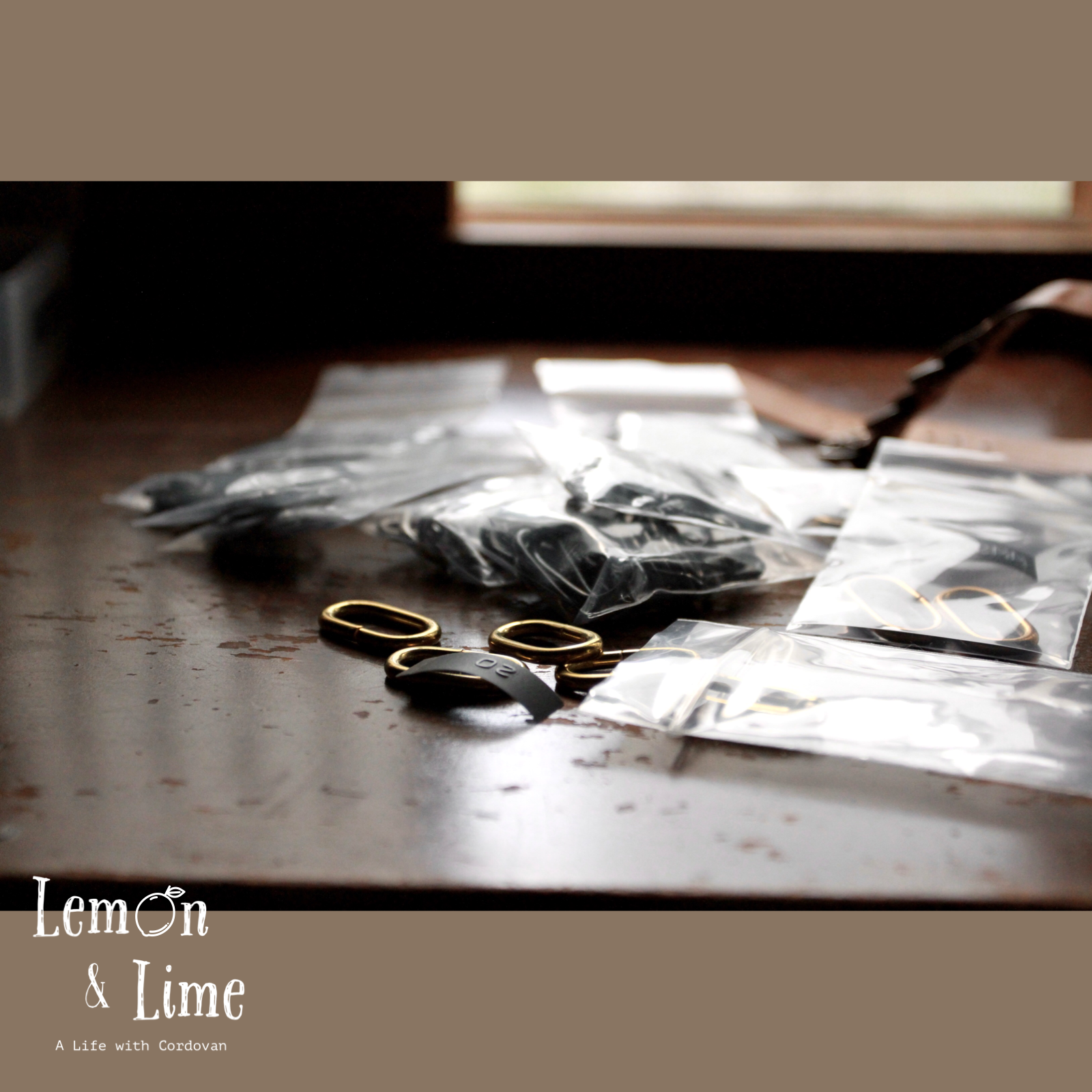 使用する素材は、コードバンと麻糸、綿麻糸のみです。コードバンの経年変化を楽しむために、ファスナーやホックなどの留め具類は使用していません。