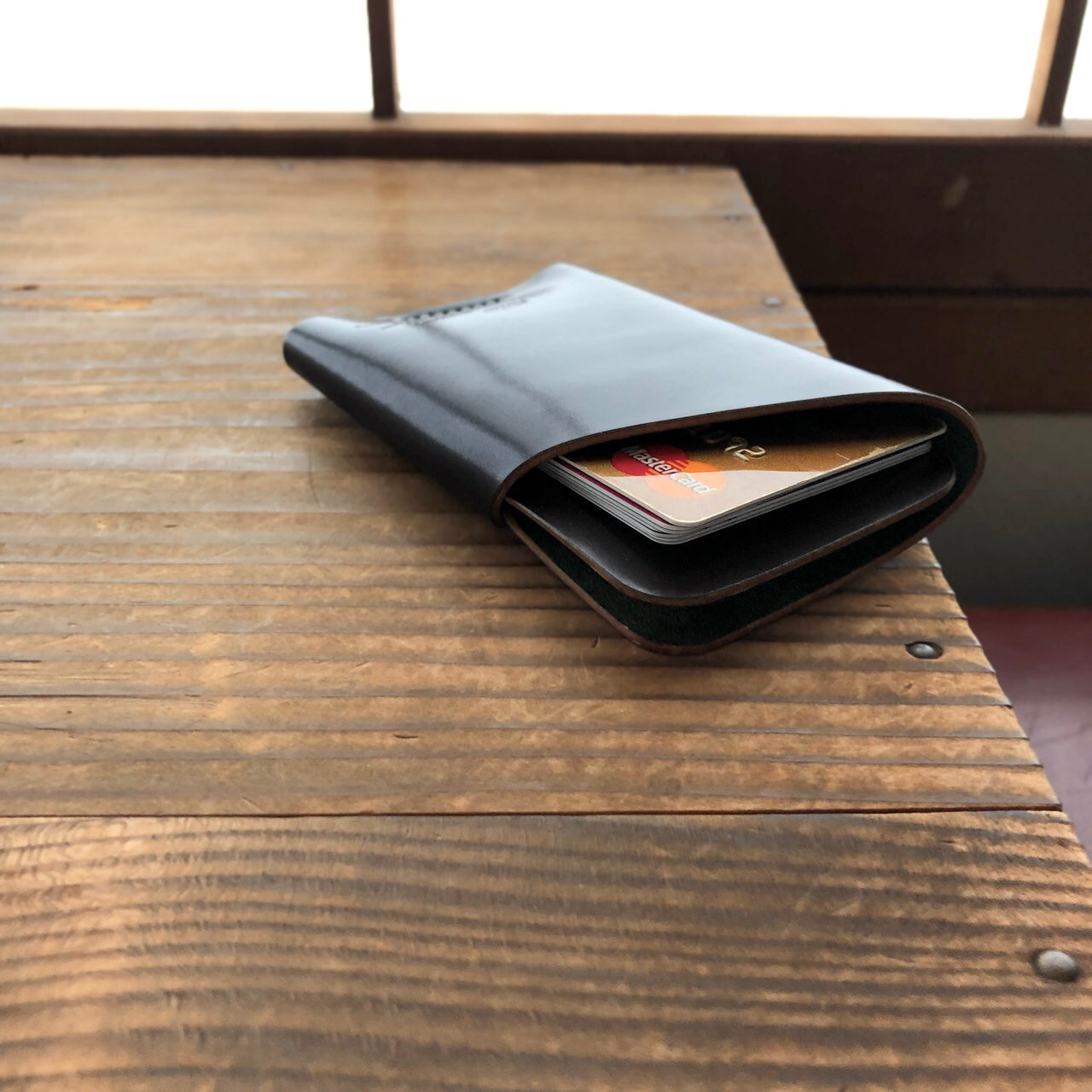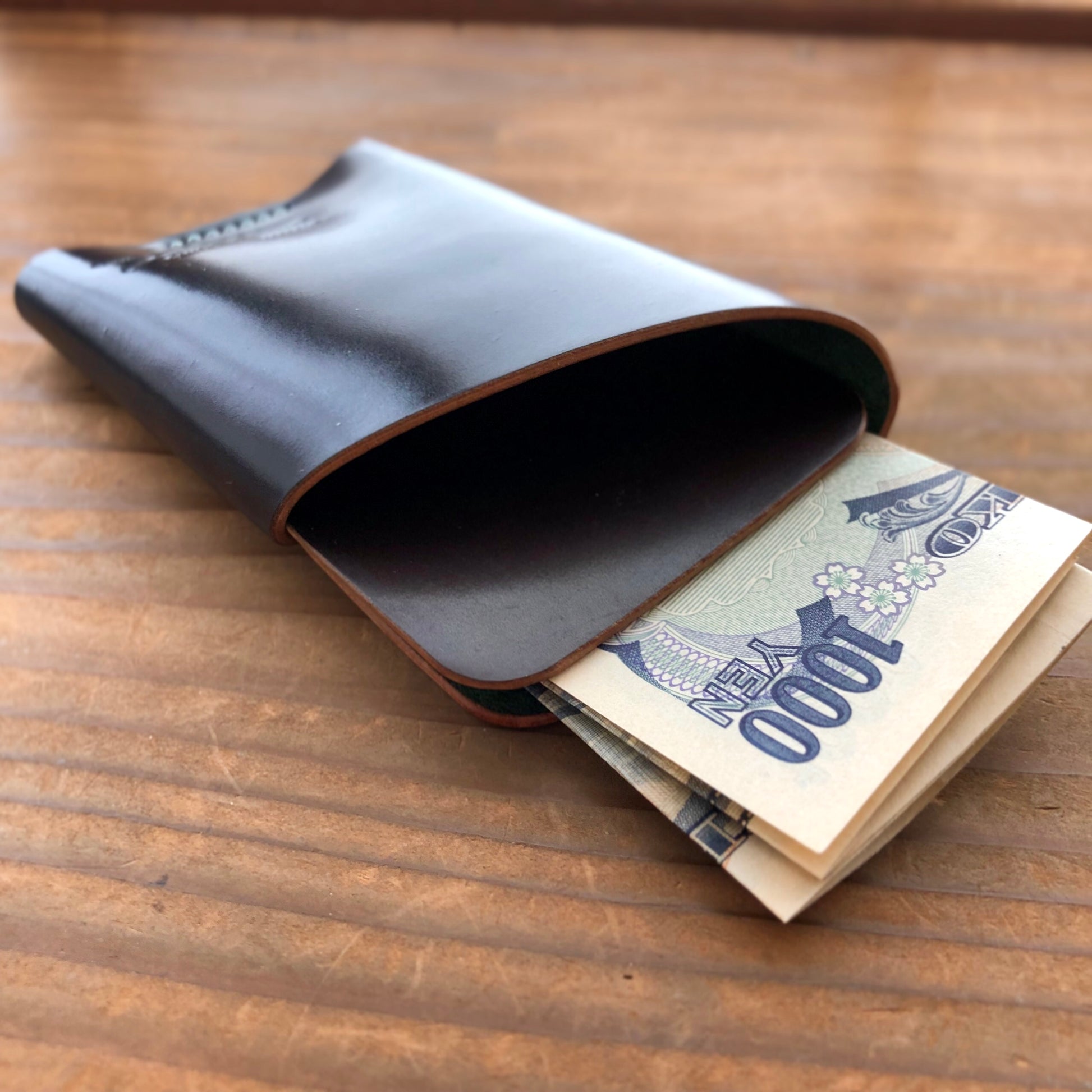 Horweenシェルコードバンで作った縦型のミニマル財布です。