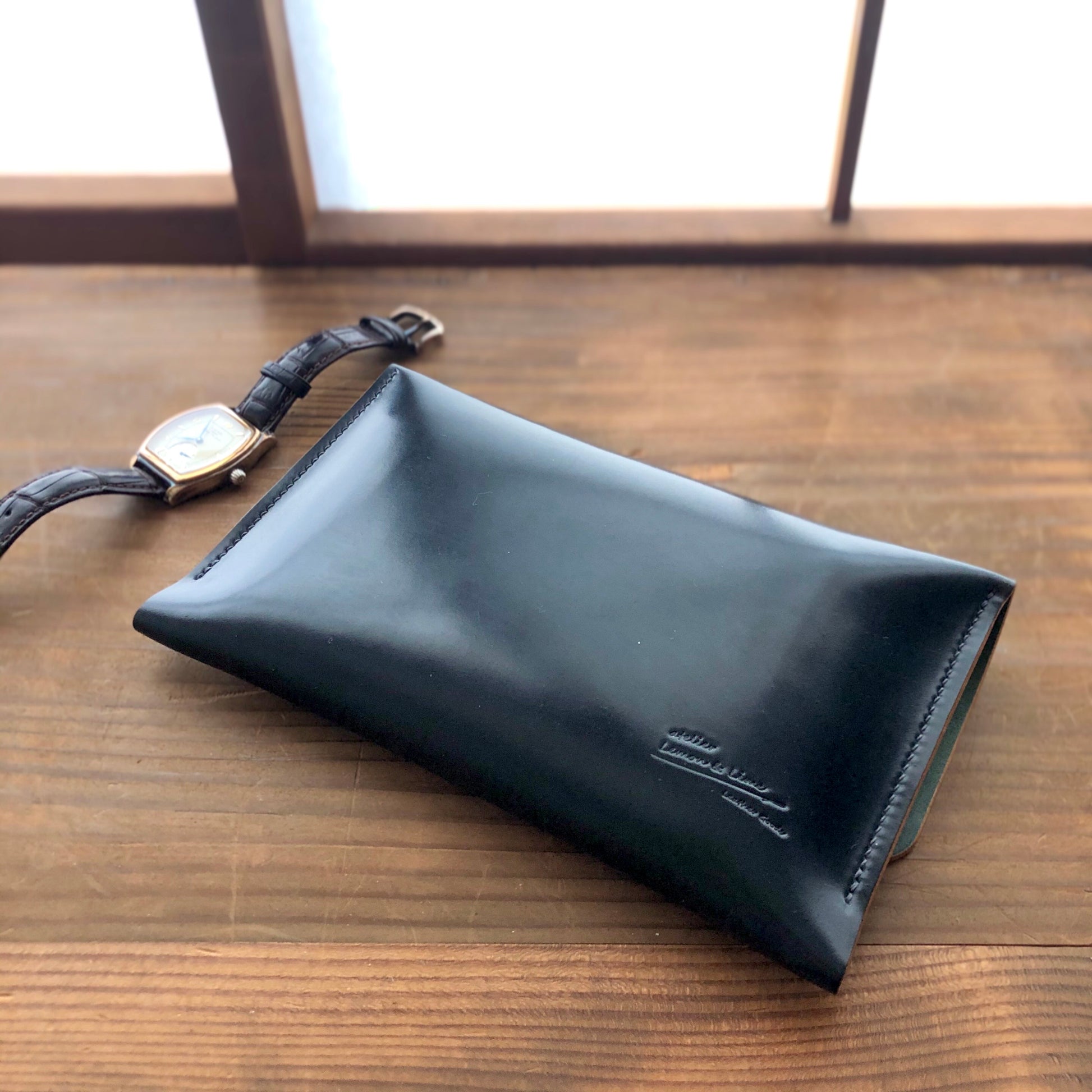 Using plenty of cordovan, I finished it in a plump shape. A simple clutch with one main pocket.