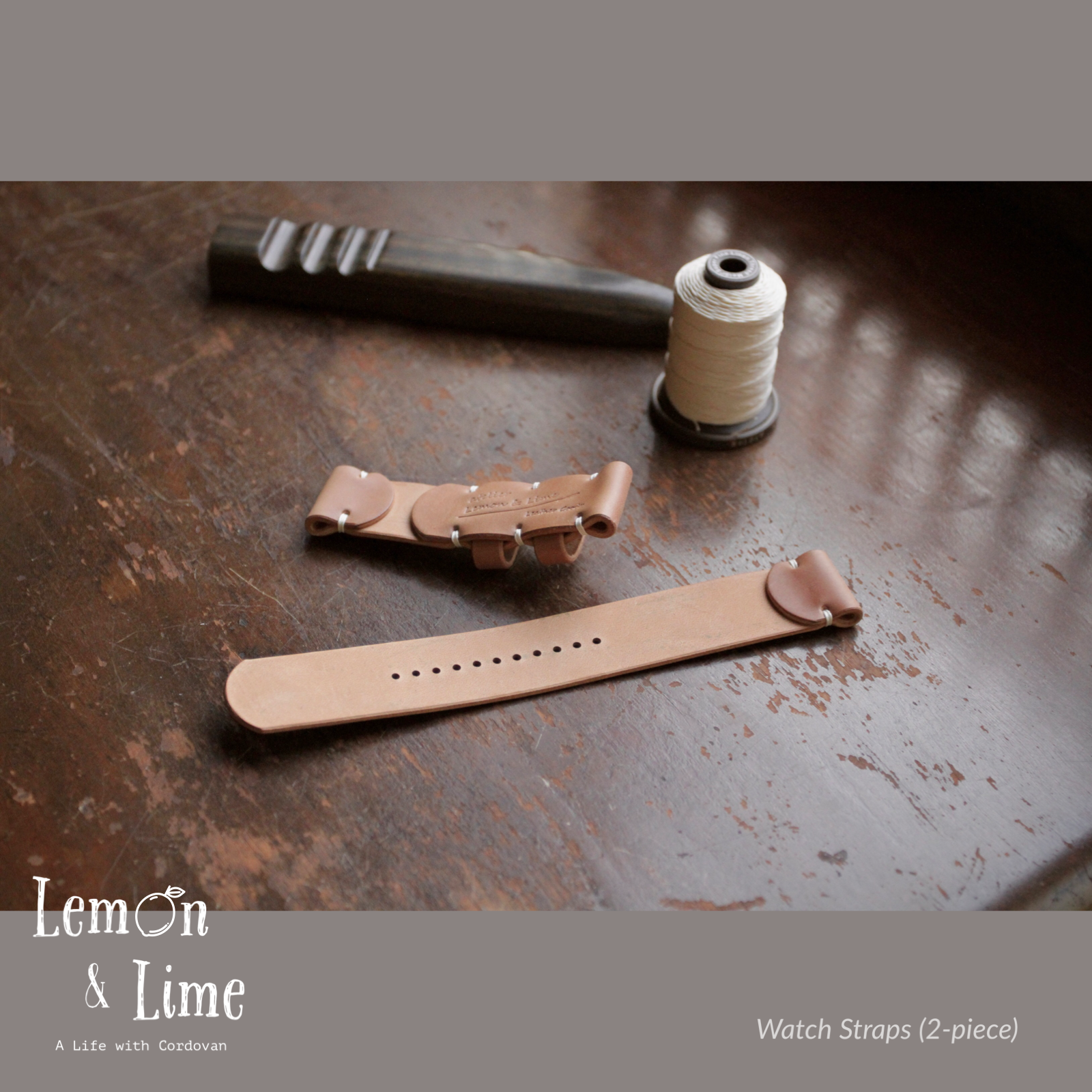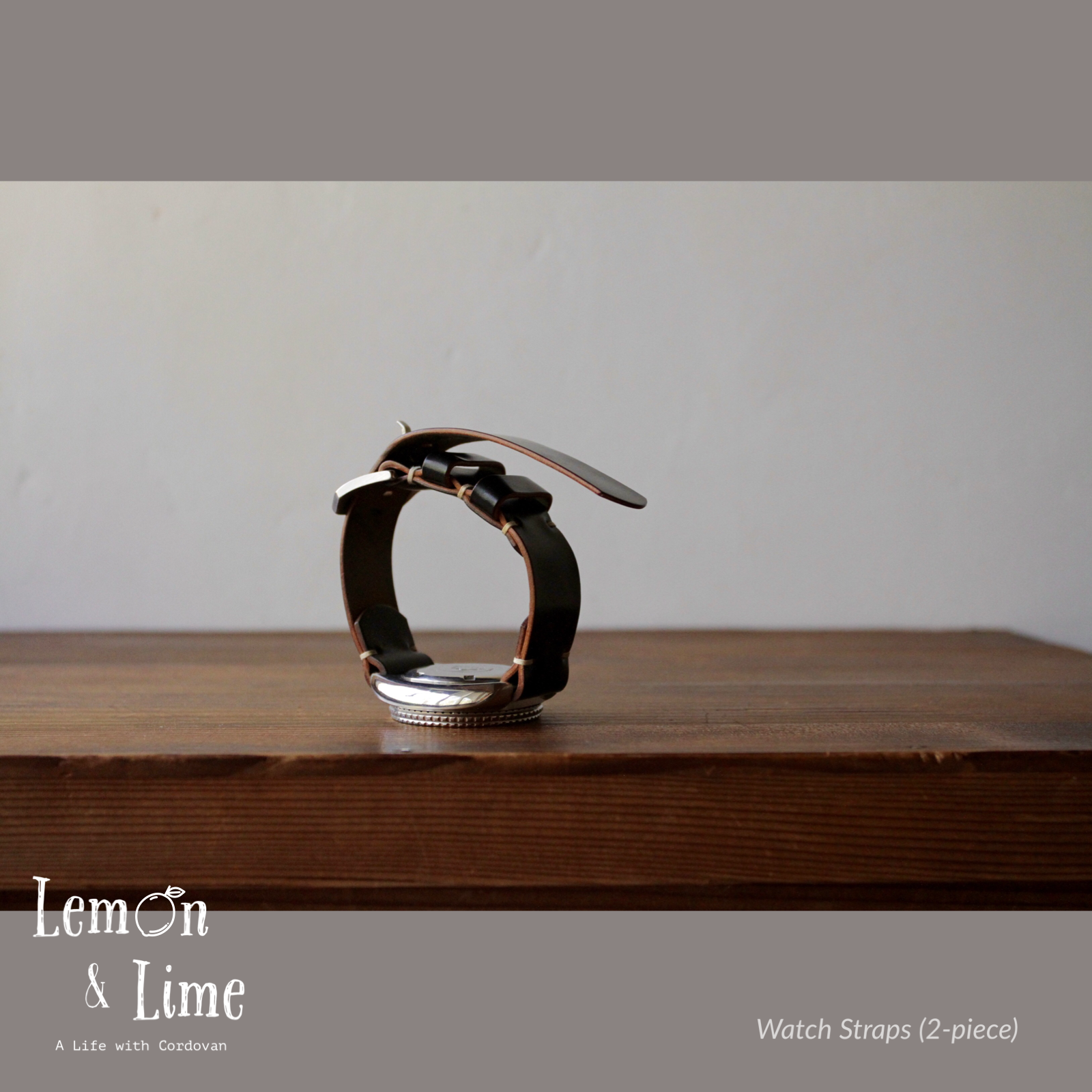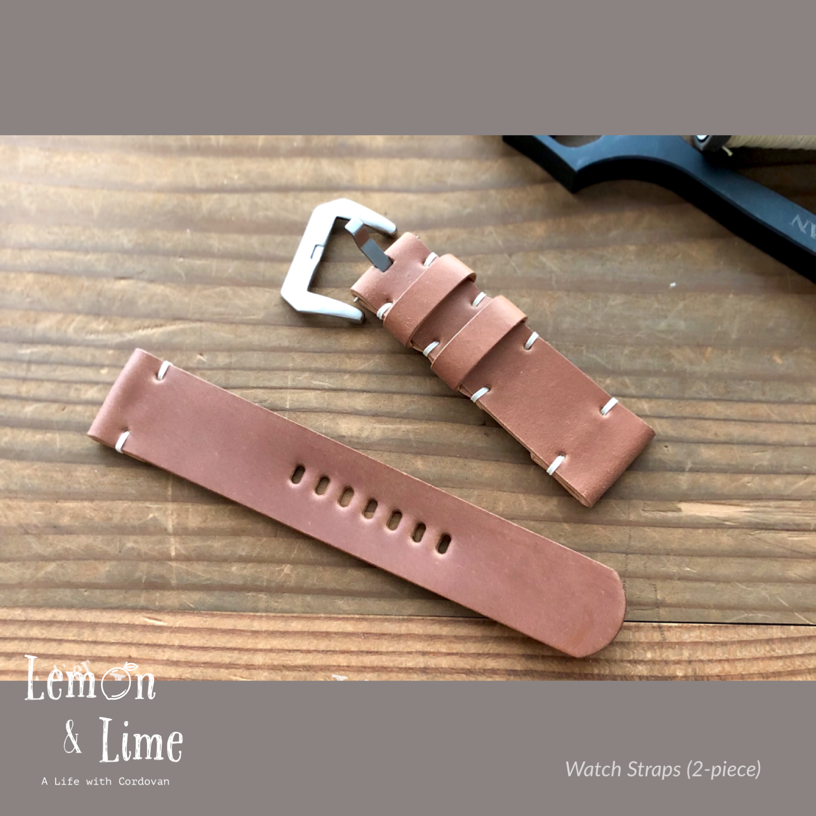 Horweenシェルコードバンで作った腕時計のベルト(2ピース仕様)です。