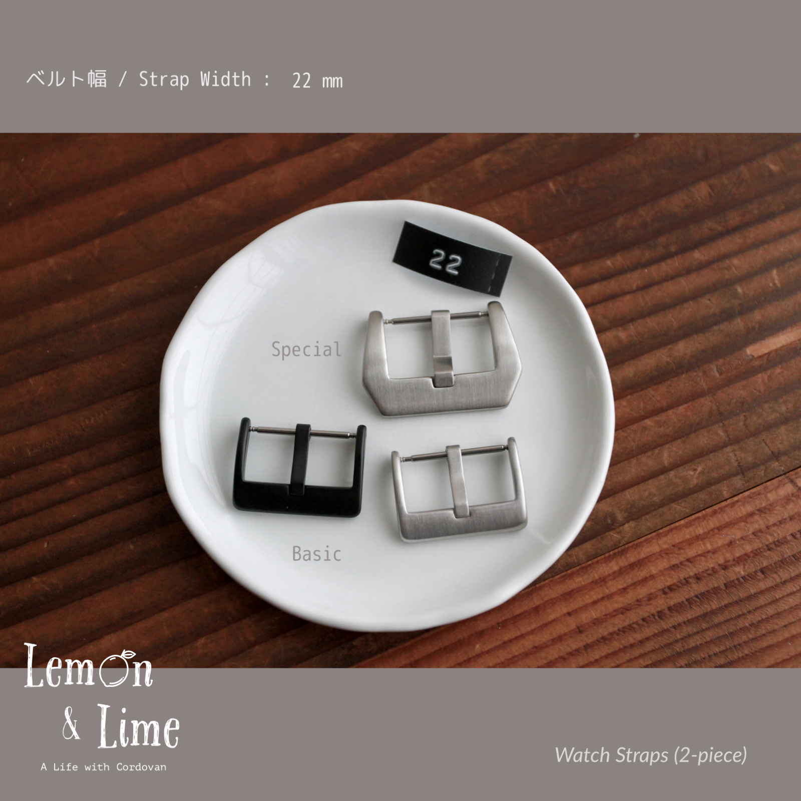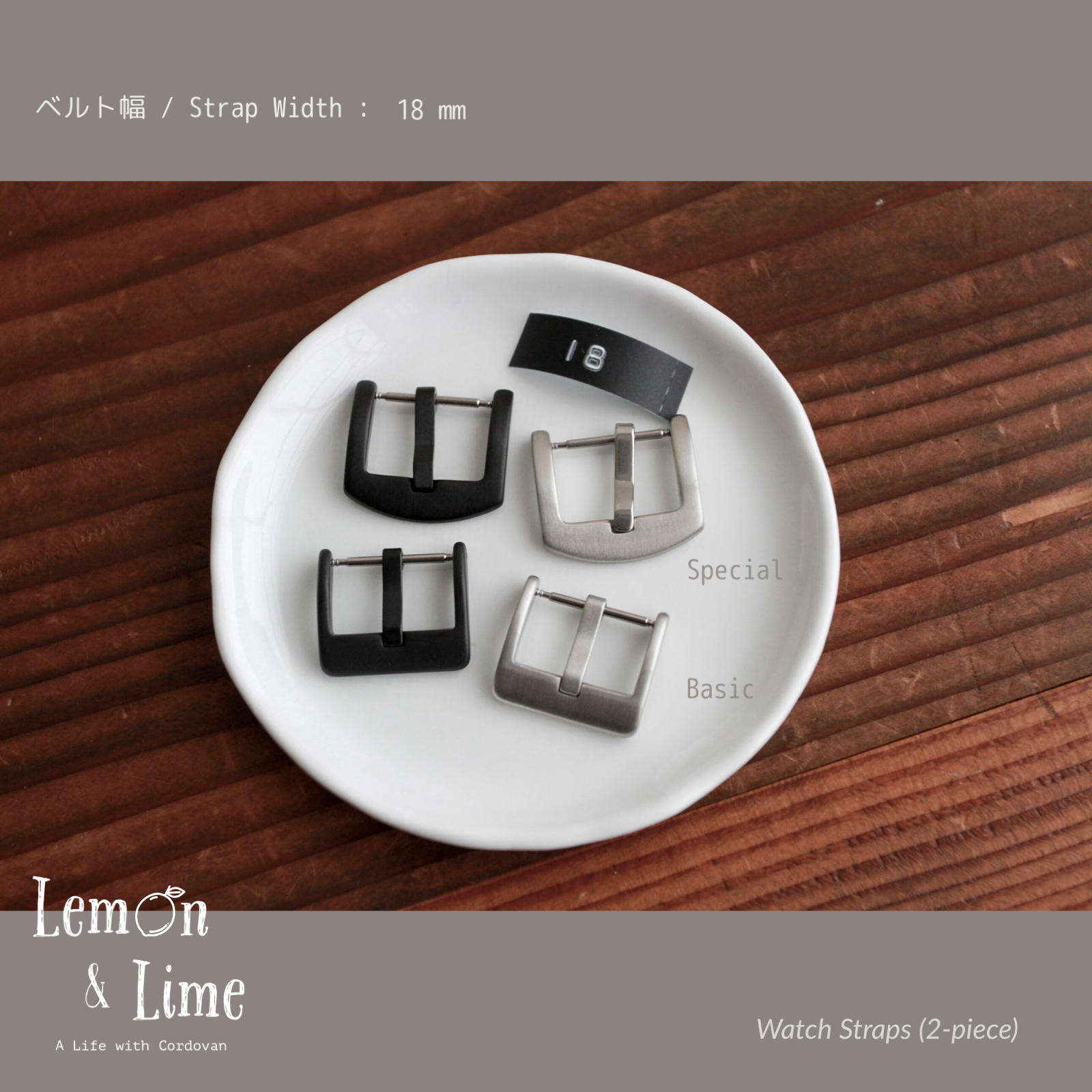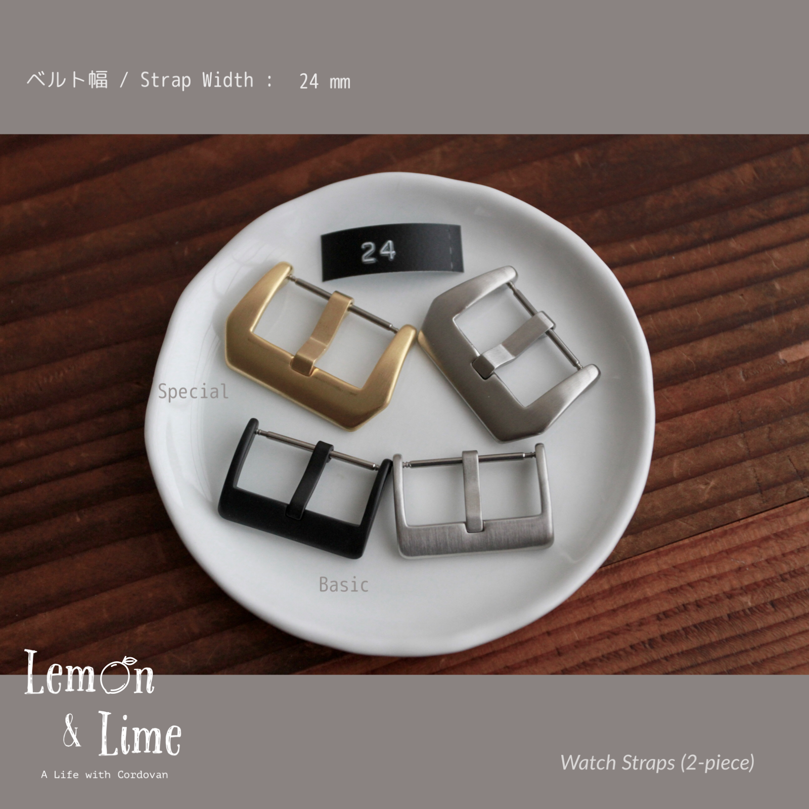 18 mm、20 mm、22 mm、24 mm の4つのベルト幅で製作いたします。